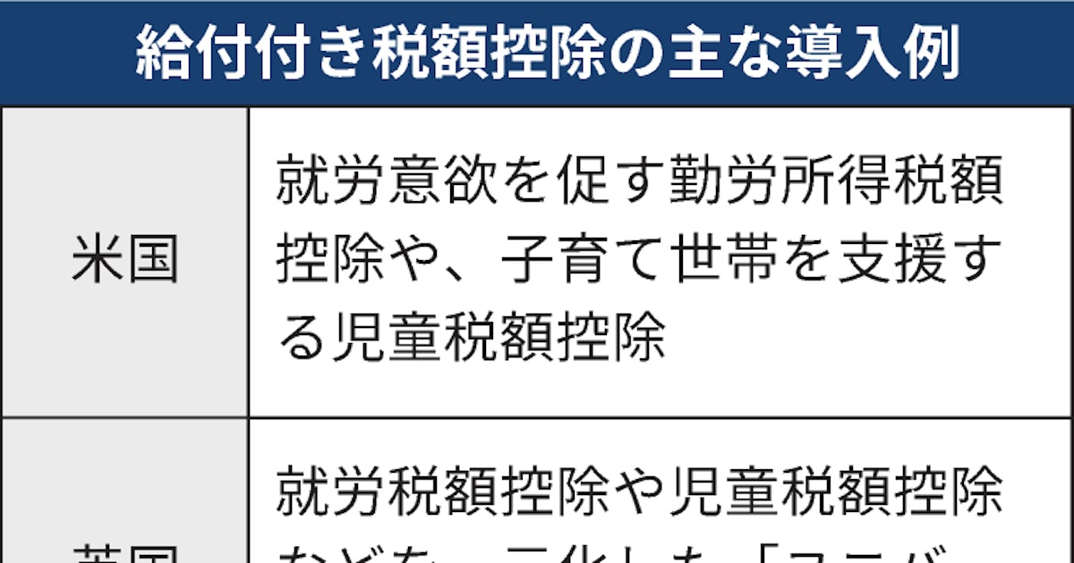 給付付き税額控除とは 納税額少ない低所得世帯にも恩恵 - 日本経済新聞▼給付付き税額控除 所得税額から一部を差し引く税額控除と、現金を渡す給付を組み合わせた制度。税負担が軽くなるという点では減税だが、通常の減税では納税額の分までしか軽減できない。この制度では、差し引く額が納税額を超えた場合、その分を現金で給付...