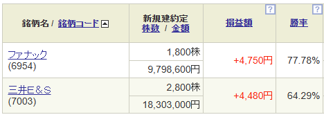 寄り付き直後の反発狙いで三井E&Sに入って、その後、寄りでは様子見しましたが、お祭り状態だったファナックに途中参戦し、利益を取らせてもらいました。
